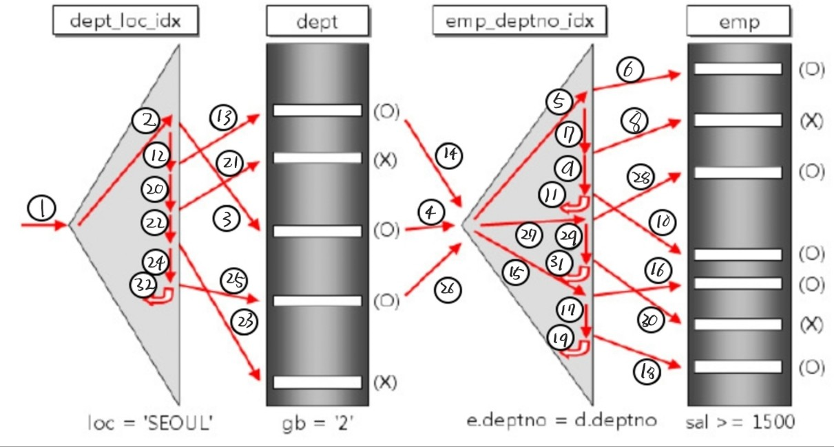* 실행계획 분석에 buffer와는 관계가 없으므로 buffer는 무시하고 진행한다.