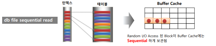 랜덤 i/o 엑세스 된 블록이 버퍼 캐시에는 Sequential하게 저장됨.